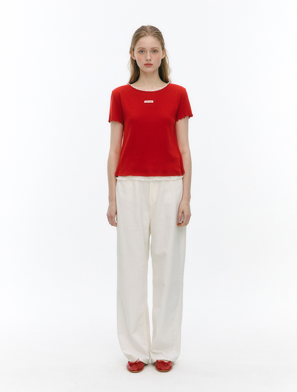 마리끌레르 레이어드 티셔츠의 가장 큰 차별점은 라벨 펀칭 디테일입니다. 일반적인 화이트 티셔츠가 평면적인 느낌을 주는 반면, 펀칭 구멍을 통해 입체감과 독특한 시각적 요소를 구현했습니다. 이는 미니멀한 디자인 내에서도 브랜드만의 아이덴티티를 표현하는 효과적인 방법론이라 할 수 있습니다.
