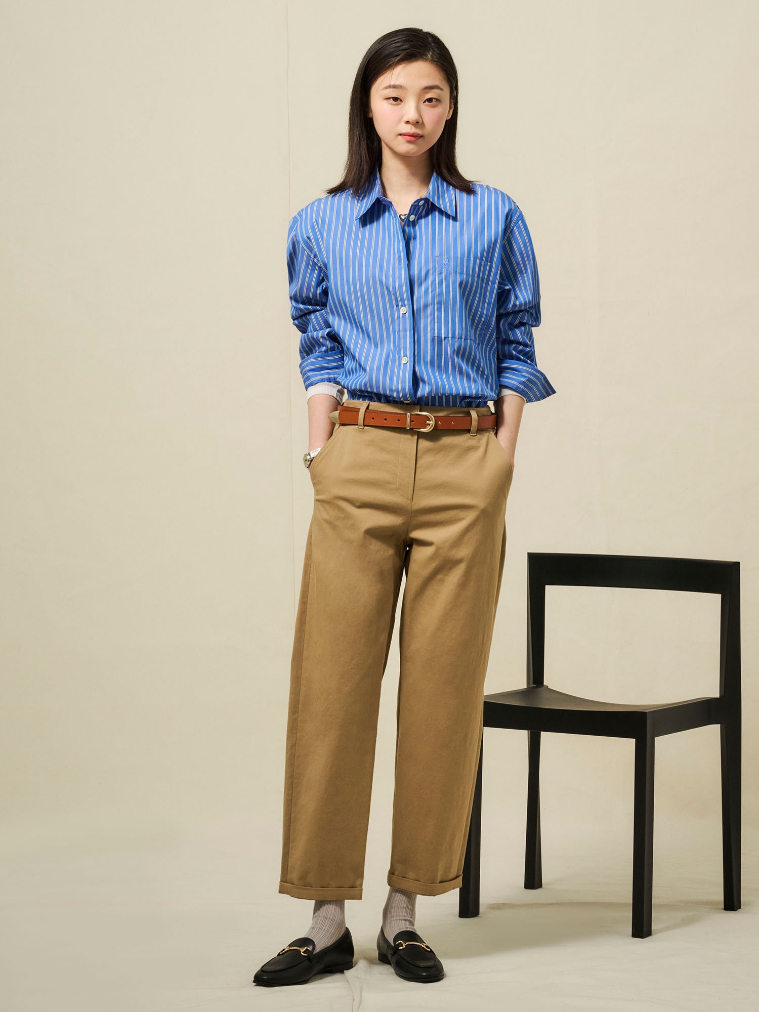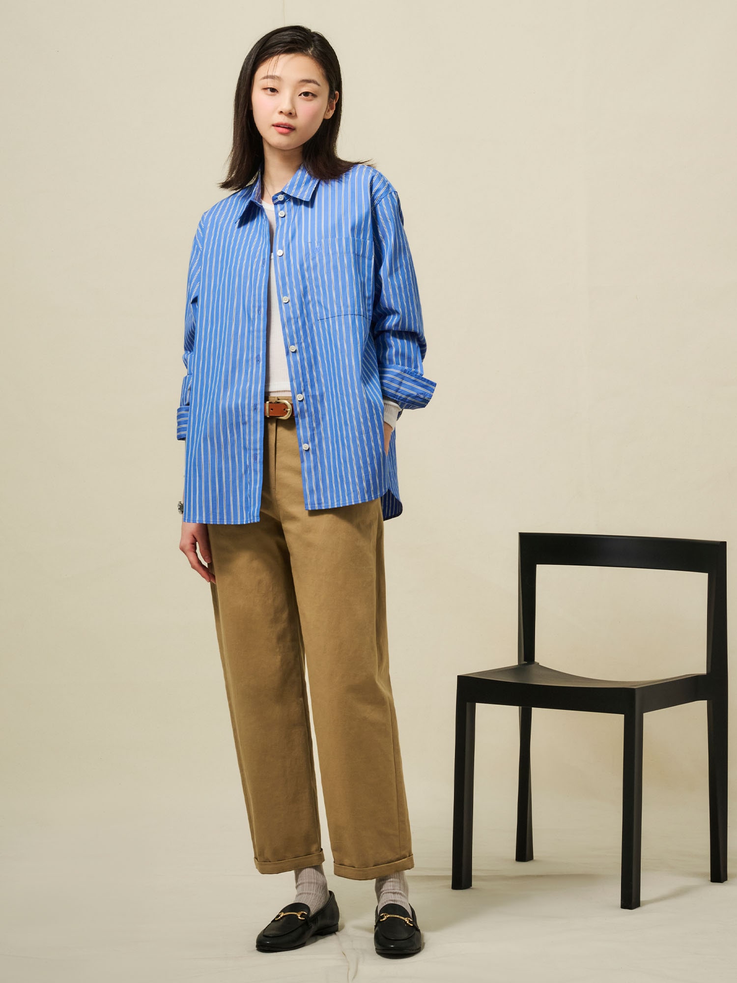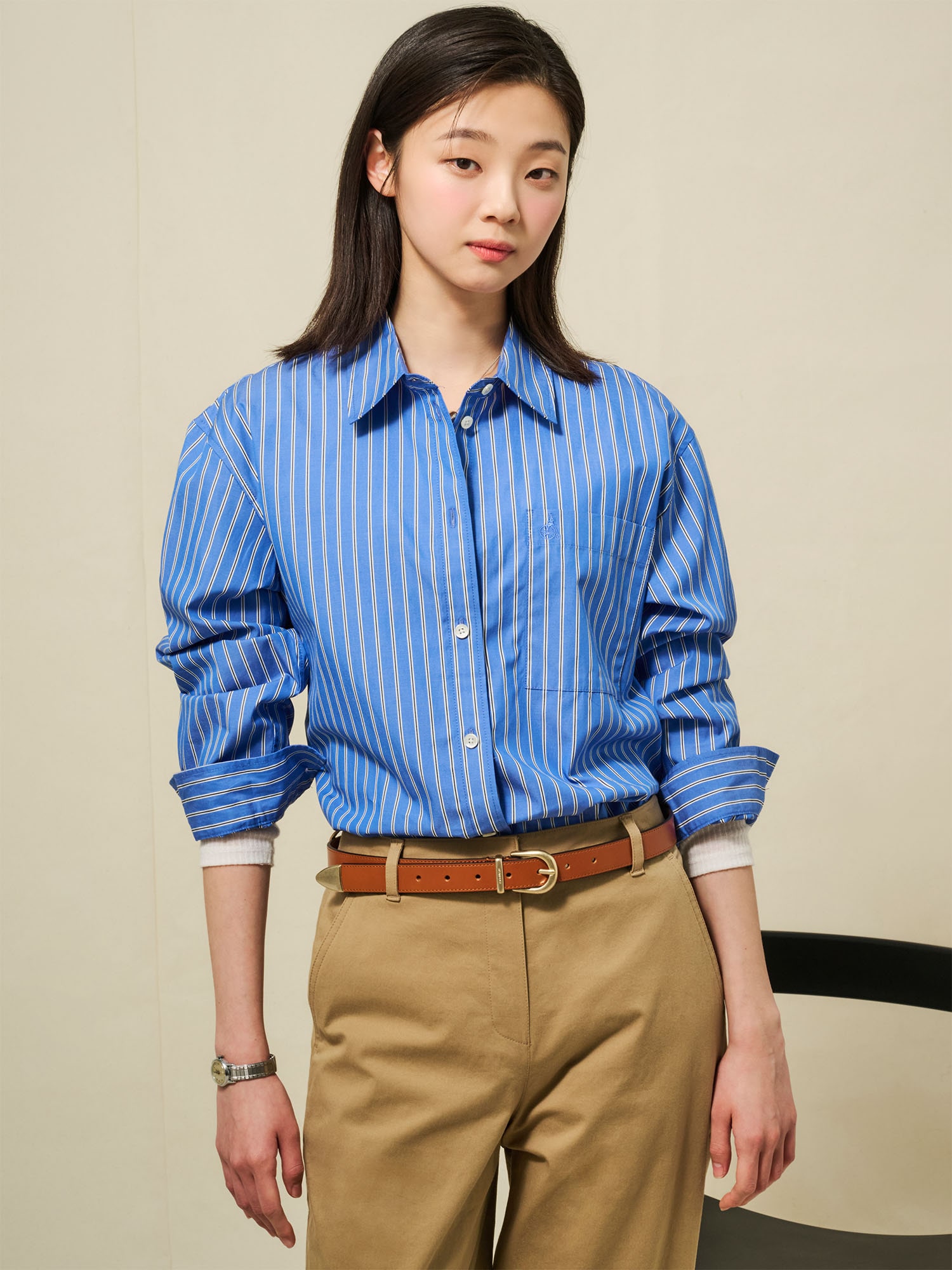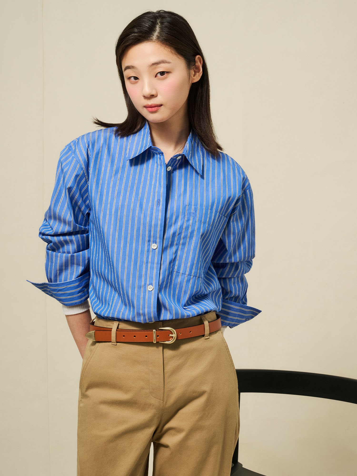 이번에는 한국을 대표하는 클래식 브랜드 빈폴레이디스(Beanpole Ladies)의 블루 스트라이프 셔츠를