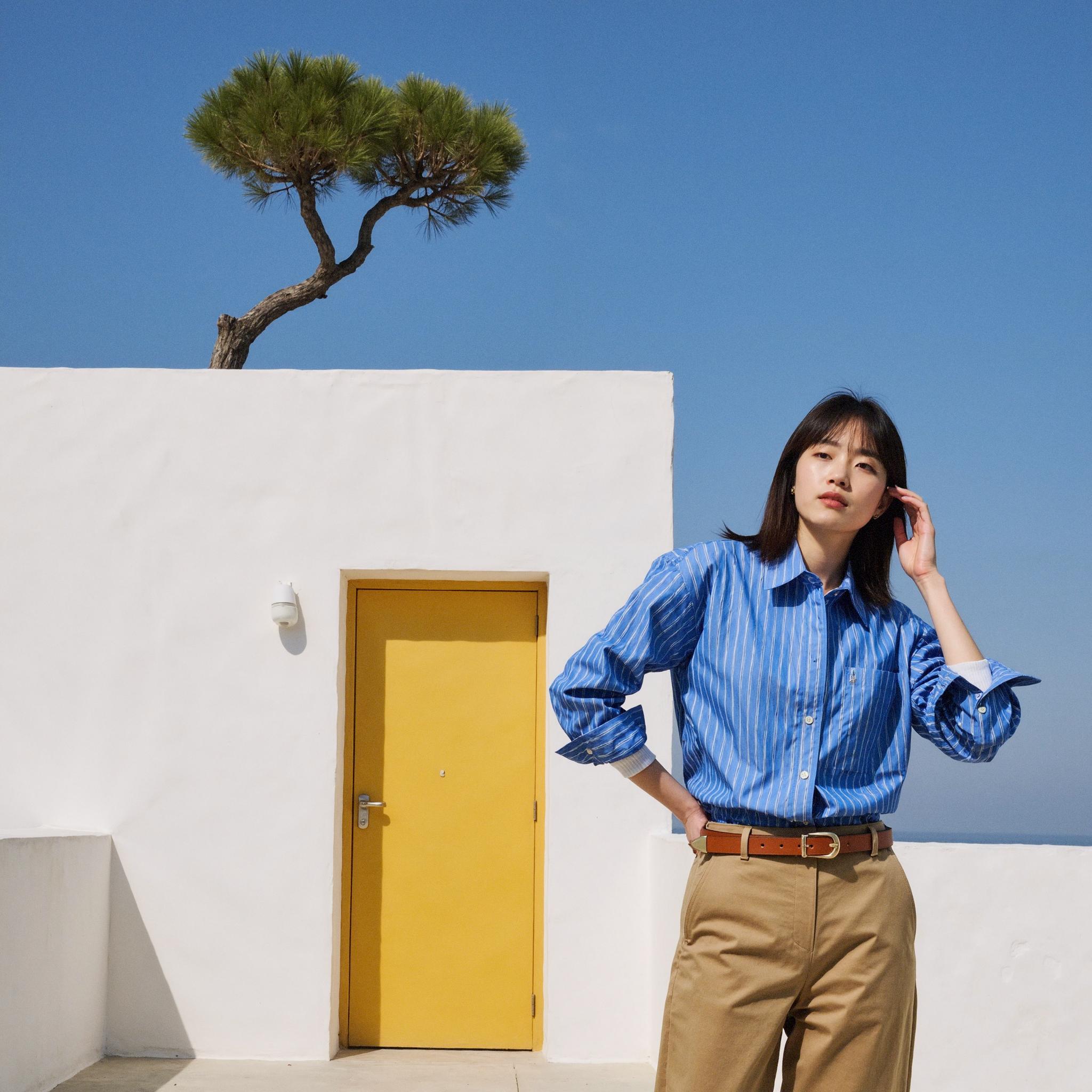 빈폴레이디스(Beanpole Ladies) 블루 스트라이프 셔츠, LaonGEN AI로 새롭게 보다