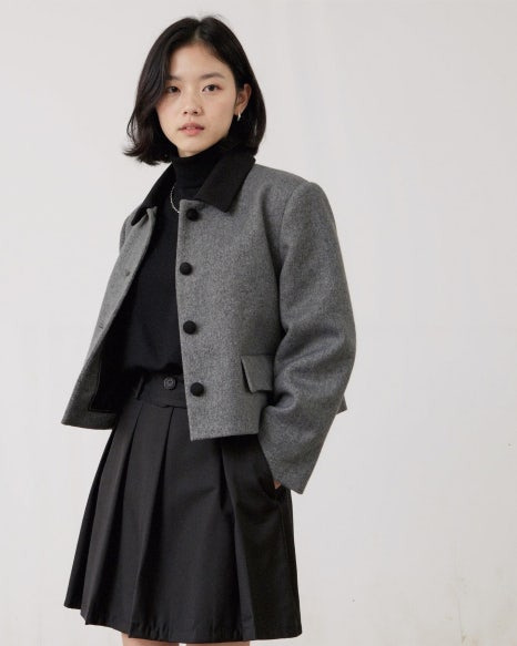 트렌디한 디테일 – 버튼, 컬러 배색, 소매 디테일까지 세심한 완성도