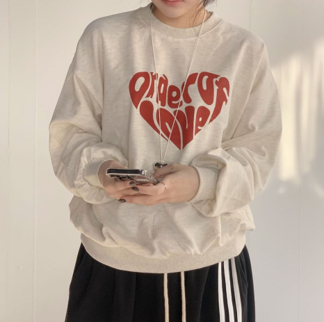 1️⃣ 러브 벌룬 오버핏 맨투맨 – 캐주얼과 빈티지 감성의 조화