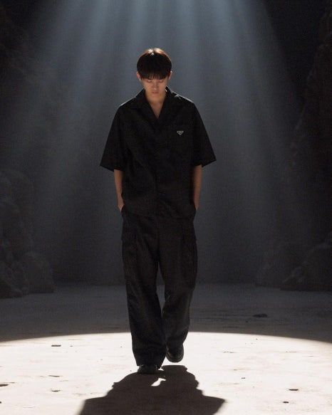 프라다의 의상은 균형 잡힌 실루엣과 정교한 재단이 돋보이며,