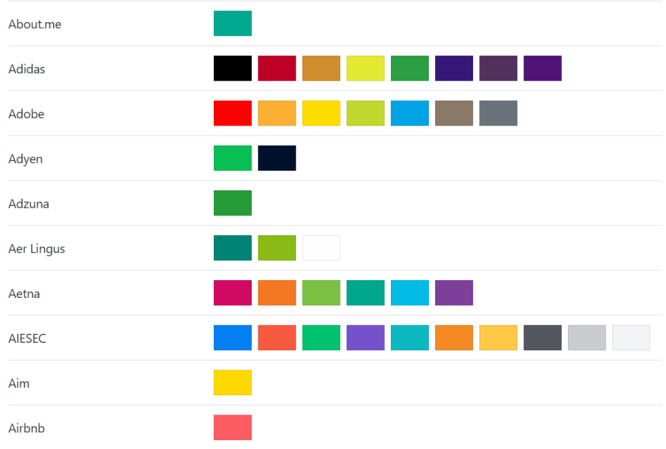브랜드별 주요 색상을 볼 수 있는 사이트(출처 : brandcolors.net)