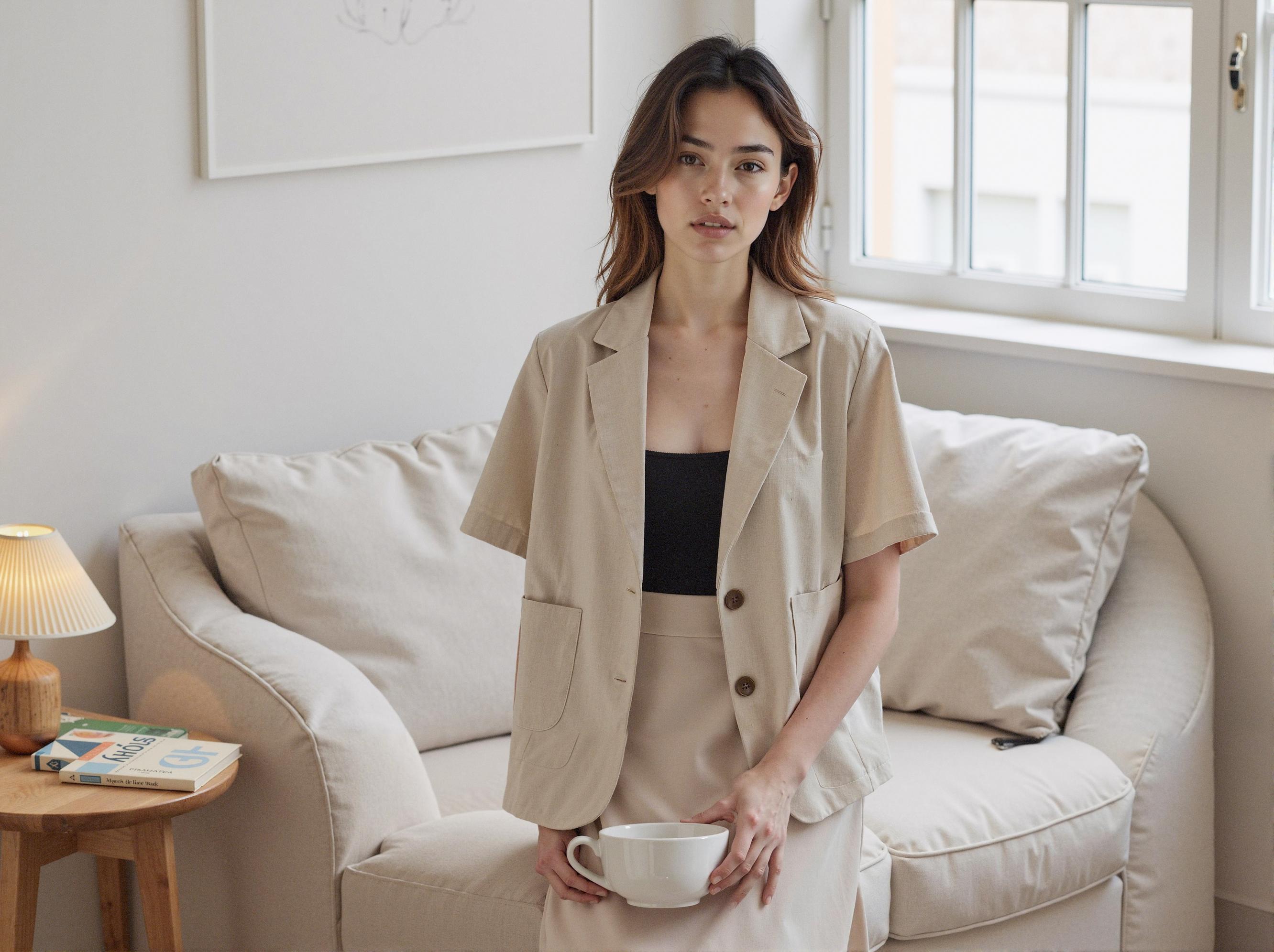 2. 스타일 설정: 브랜드의 무드에 맞는 배경과 스타일을 업로드합니다. 린넨 재킷의 경우 자연스럽고 세련된 분위기를 연출할 수 있는 설정을 적용했습니다.