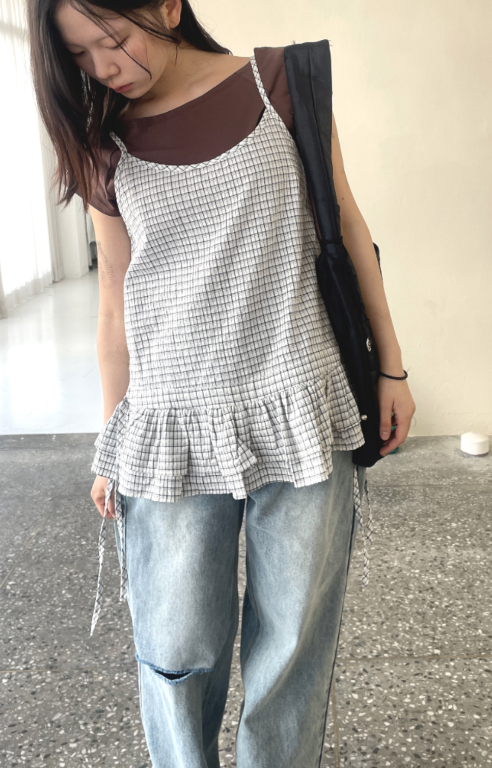 ✔ 화이트 베이스에 모던한 체크 패턴으로 깔끔하고 세련된 인상 ✔ 허리 스트링으로 체형에 맞게 조절 가능한 실루엣 ✔ 러플 디테일로 여성스러운 분위기 연출 ✔ 단독 착용은 물론 레이어드 스타일링에도 활용도 높음