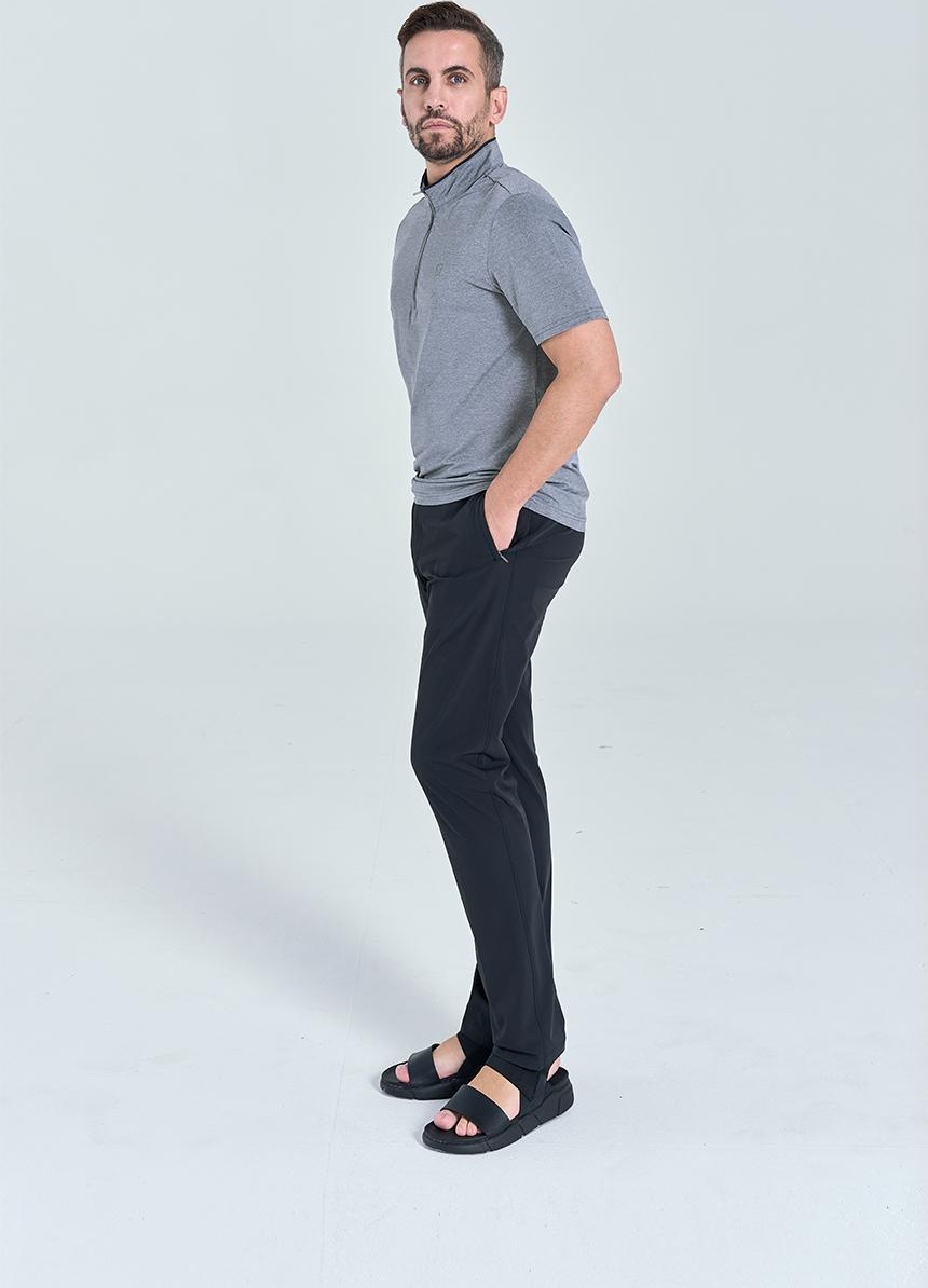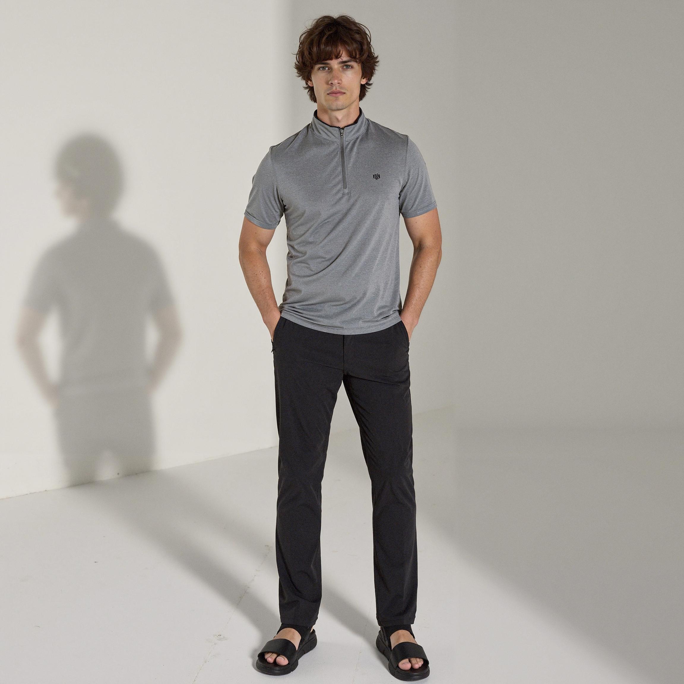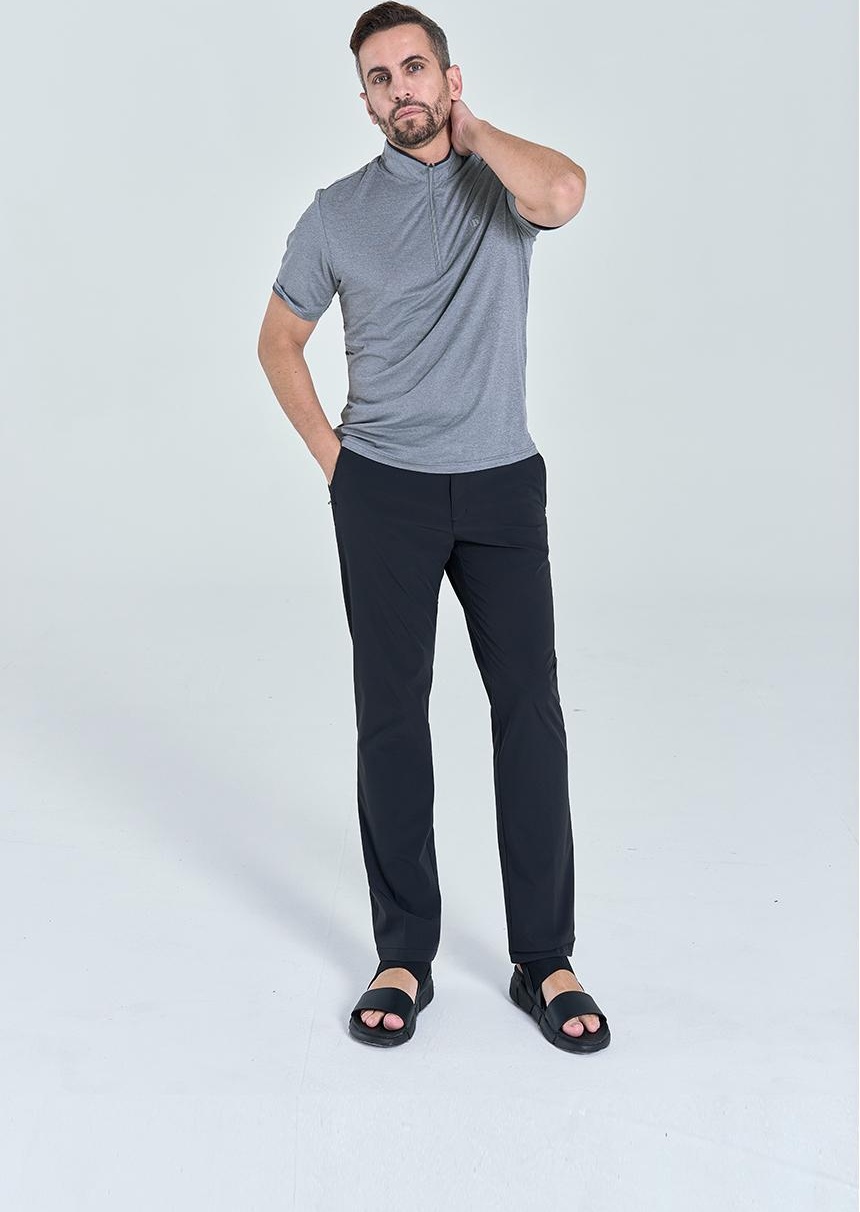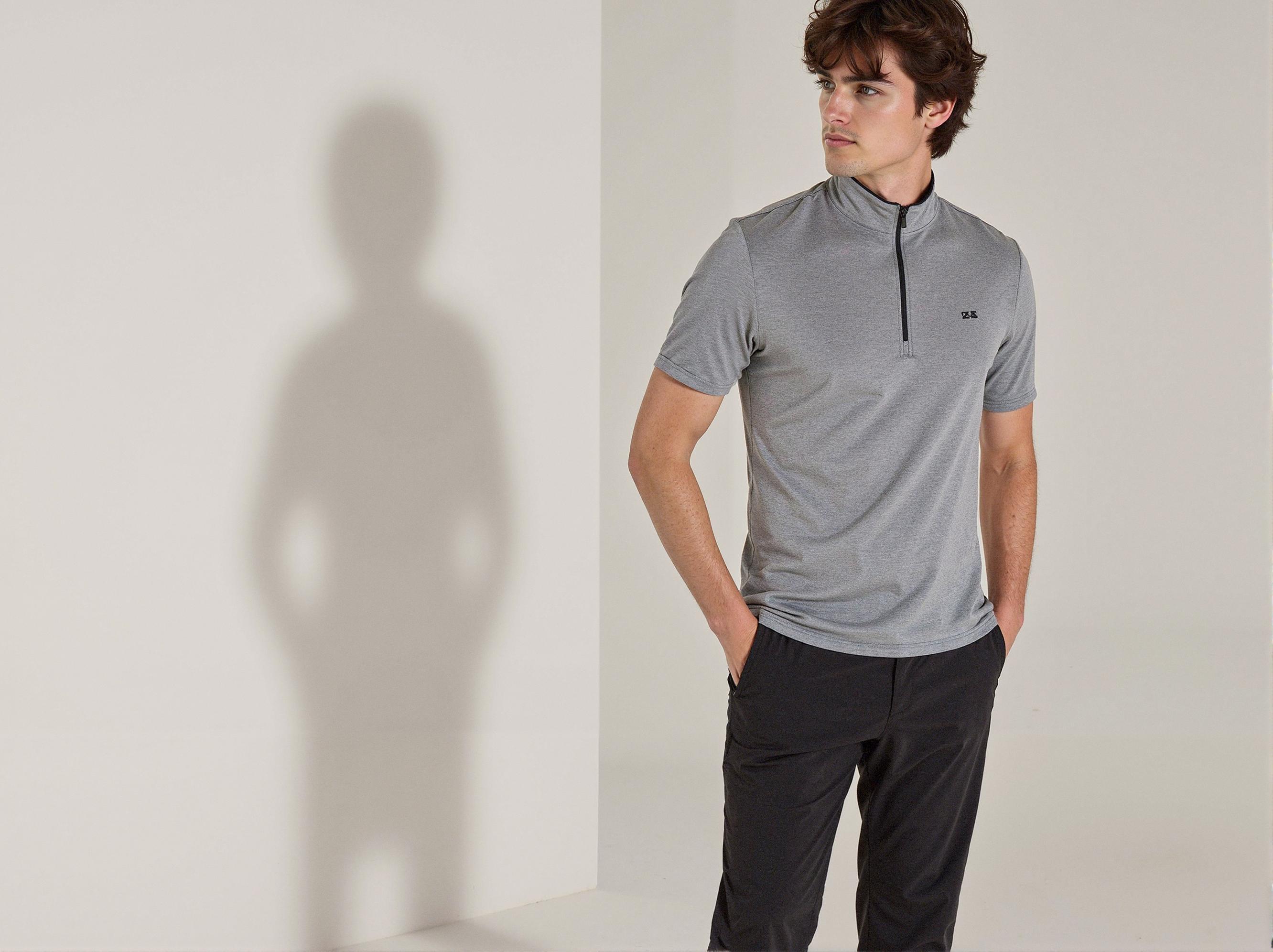 도심 속 다양한 공간에서의 캐주얼한 스타일링도 효과적으로 표현되었습니다. 카페, 거리, 사무공간 등에서 스판 반집업 반팔 티셔츠가 데일리룩으로 활용되는 모습이 자연스럽게 연출되어, 브랜드가 추구하는 도시적 감성이 잘 드러났습니다.