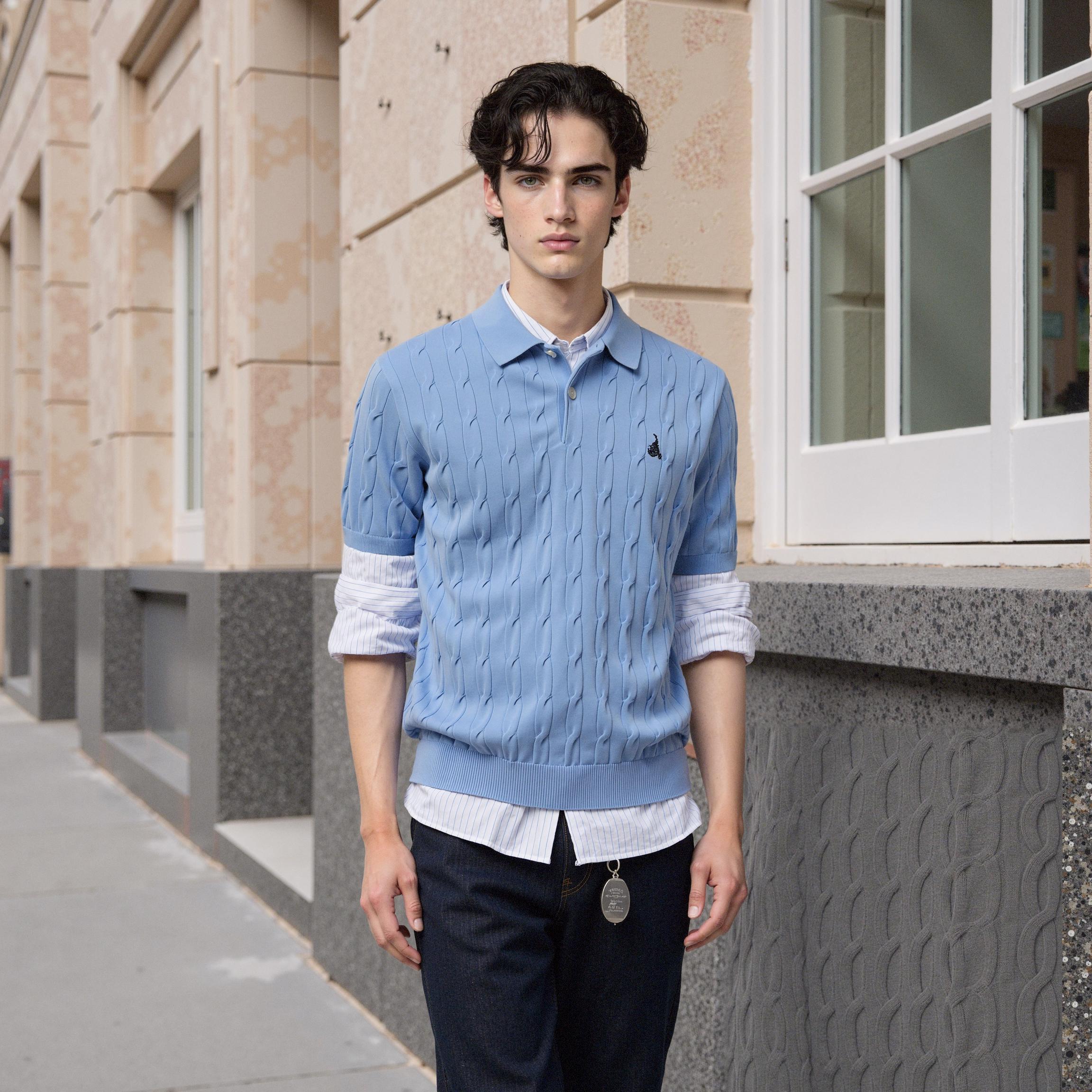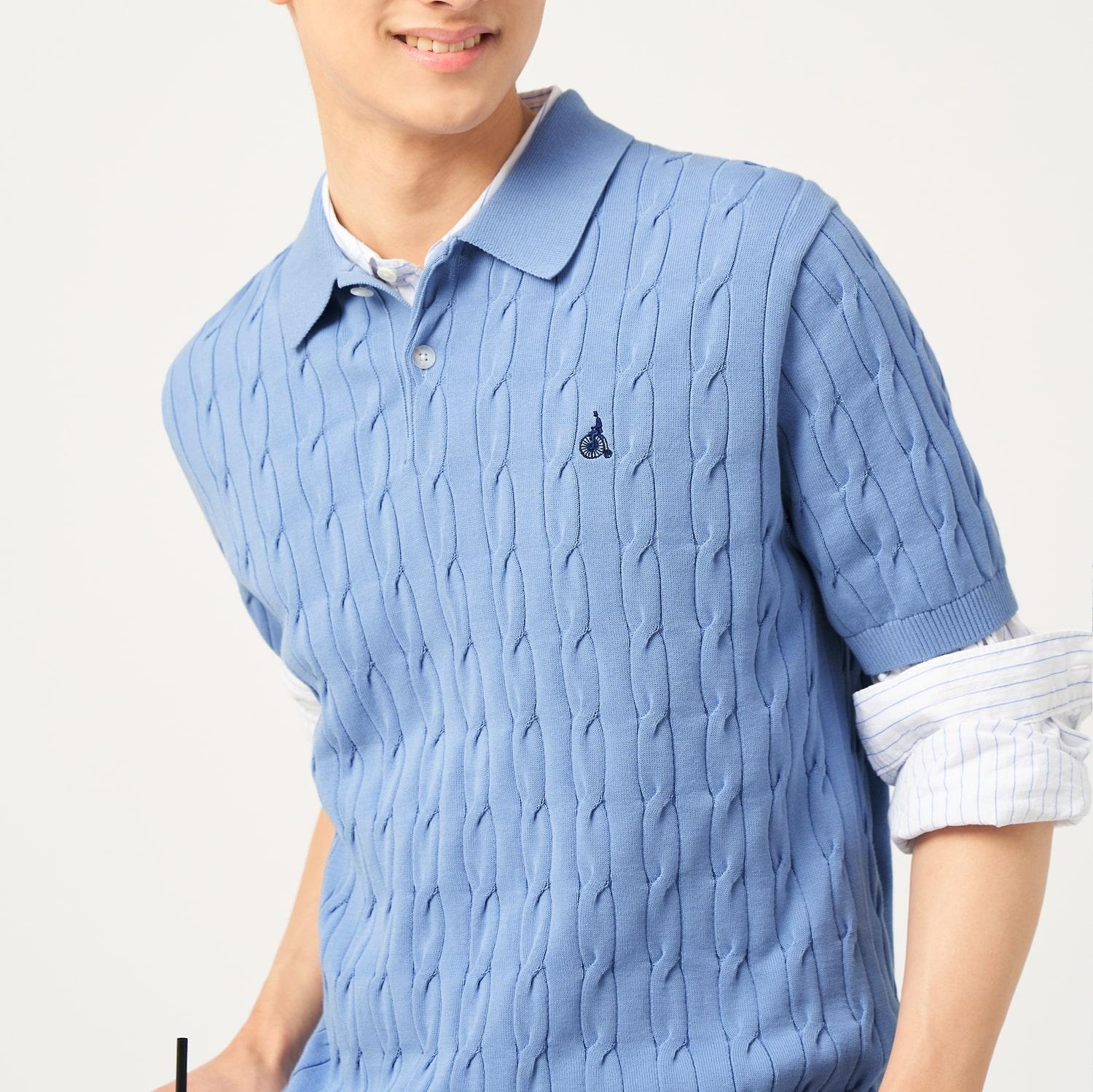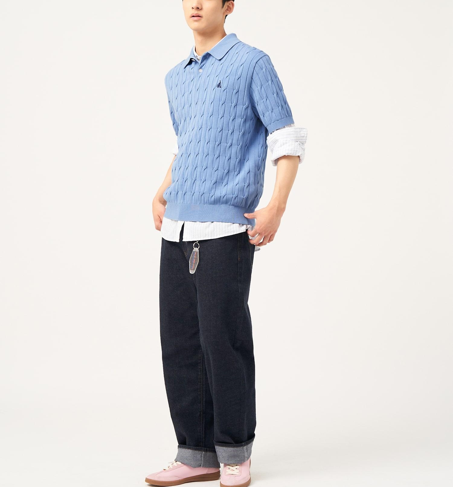 빈폴(Beanpole)의 칼라넥 니트는 케이블 조직과 카라 디테일이 특징이며, 셔츠 레이어드에는 단정함, 데님 매치에는 캐주얼함을 부여하는 활용도 높은 제품입니다. 기존 룩북은 소재감, 실루엣, 기본 착장을 안정적으로 보여주는 화보 컷들로 구성되어 있습니다.