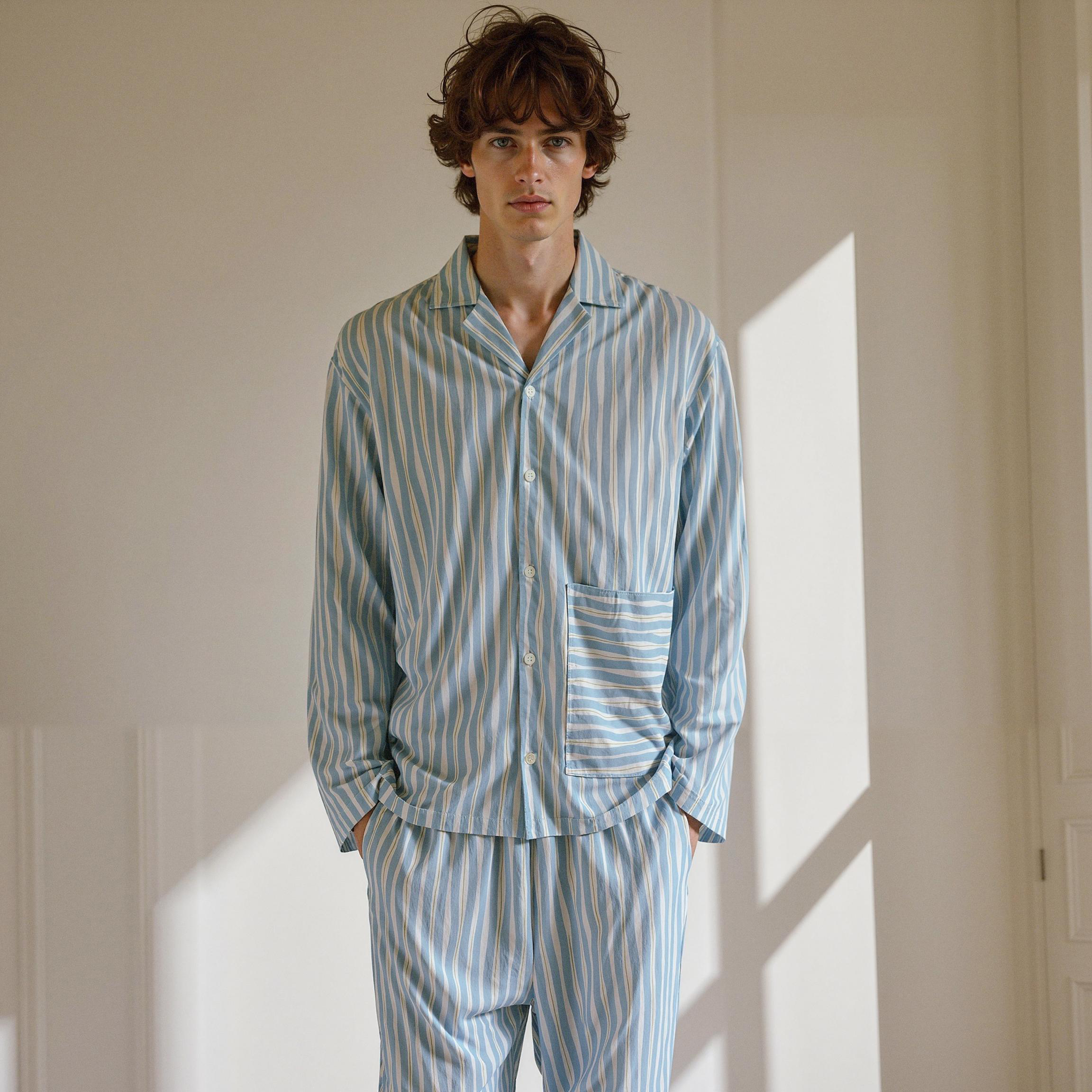 이 파자마의 가장 큰 특징은 실용성과 미적 가치를 동시에 만족시킨다는 점입니다. 홈웨어로서의 편안함은 물론, 캐주얼한 외출복으로도 충분히 활용 가능한 디자인을 보여줍니다.