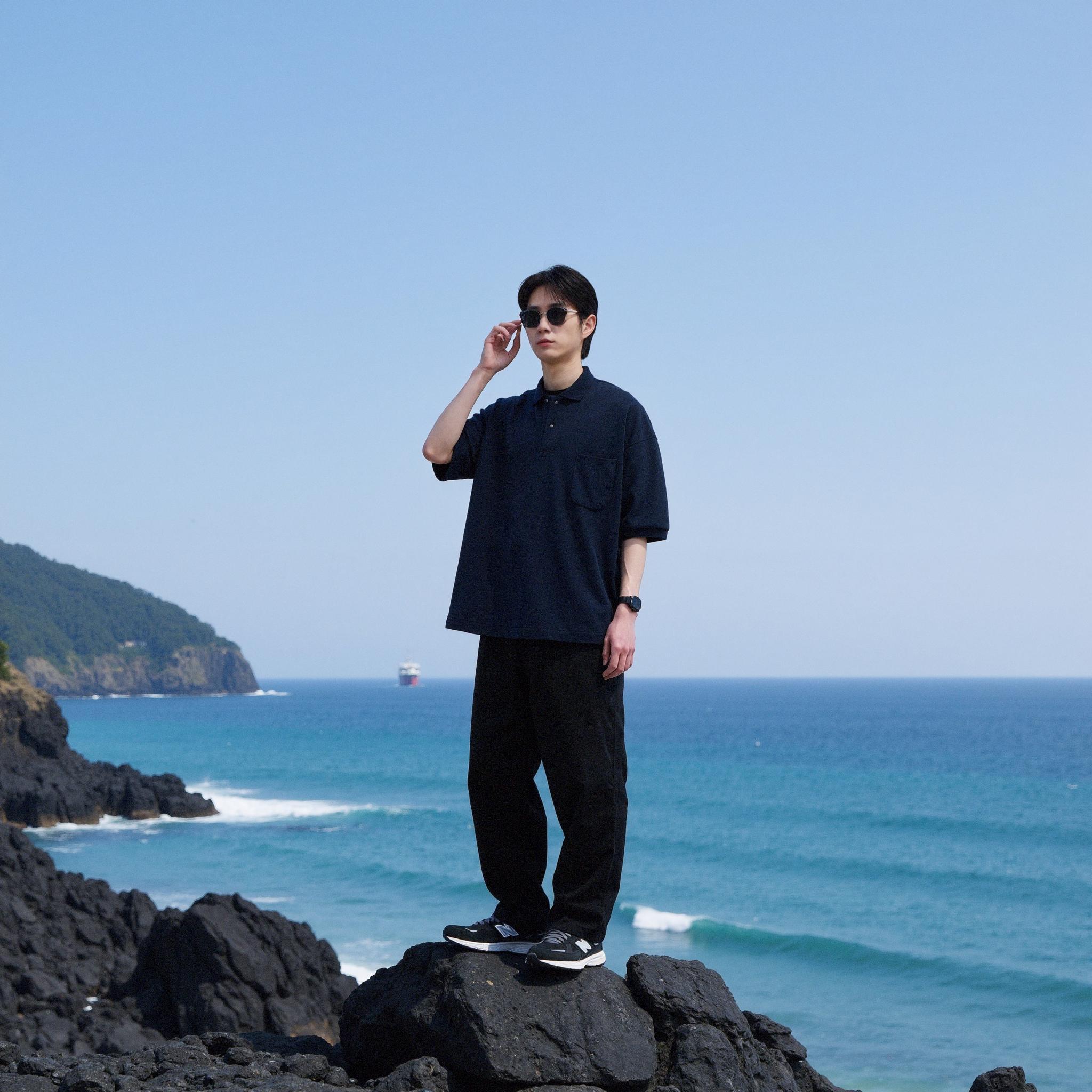 이번 AI 화보에 사용된 제품은 나나미카(NANAMICA)의 모스 스티치 필드 빅 폴로입니다. 클래식한 폴로 디자인에 모던한 감각을 더한 이 제품은, 특별한 모스 스티치 패턴과 여유로운 빅 실루엣이 특징입니다.