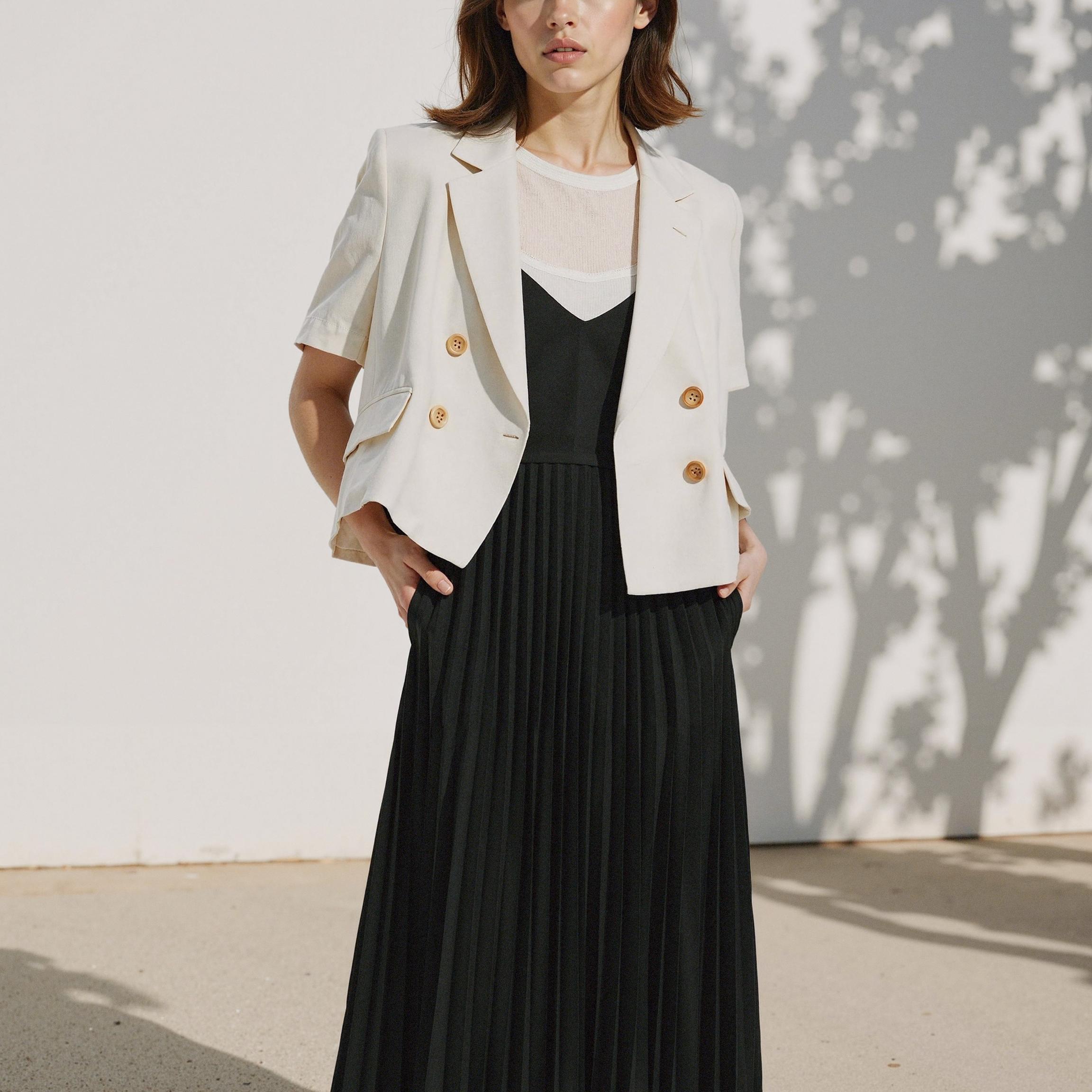 베이지 톤의 미묘한 뉘앙스와 블랙 원피스와의 조화가 만족스러웠습니다. 브랜드 고유의 미니멀 감성이 일관되게 유지되었고, 여러 각도에서 촬영해도 컬러 밸런스가 안정적이었습니다.