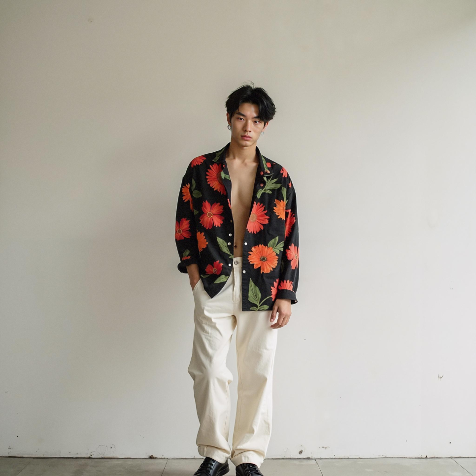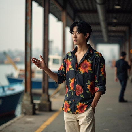 정청 꽃무늬 체크 셔츠 -> AI 사진 재생성 -> AI Model Cozy 입히기 -> 동영상 만들기