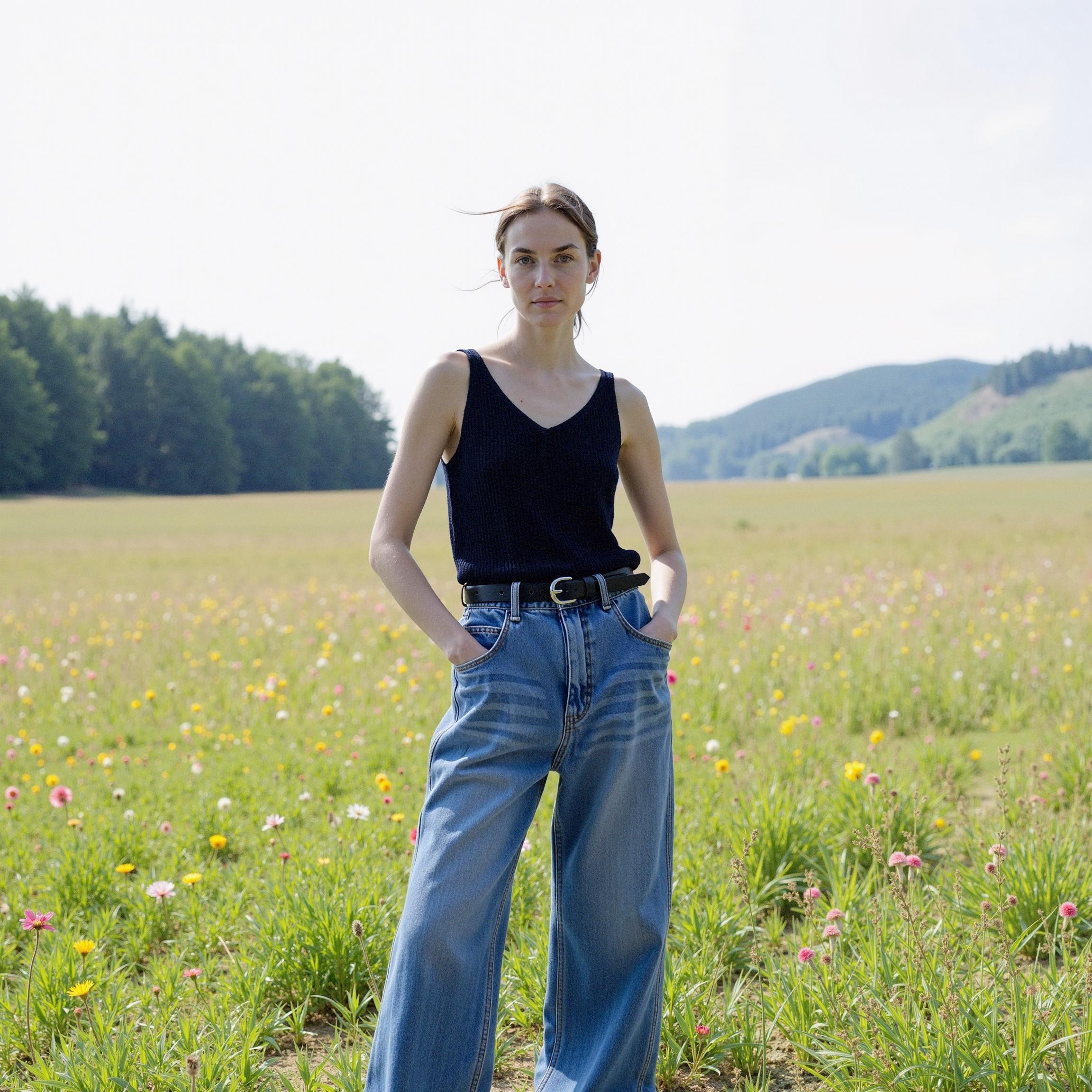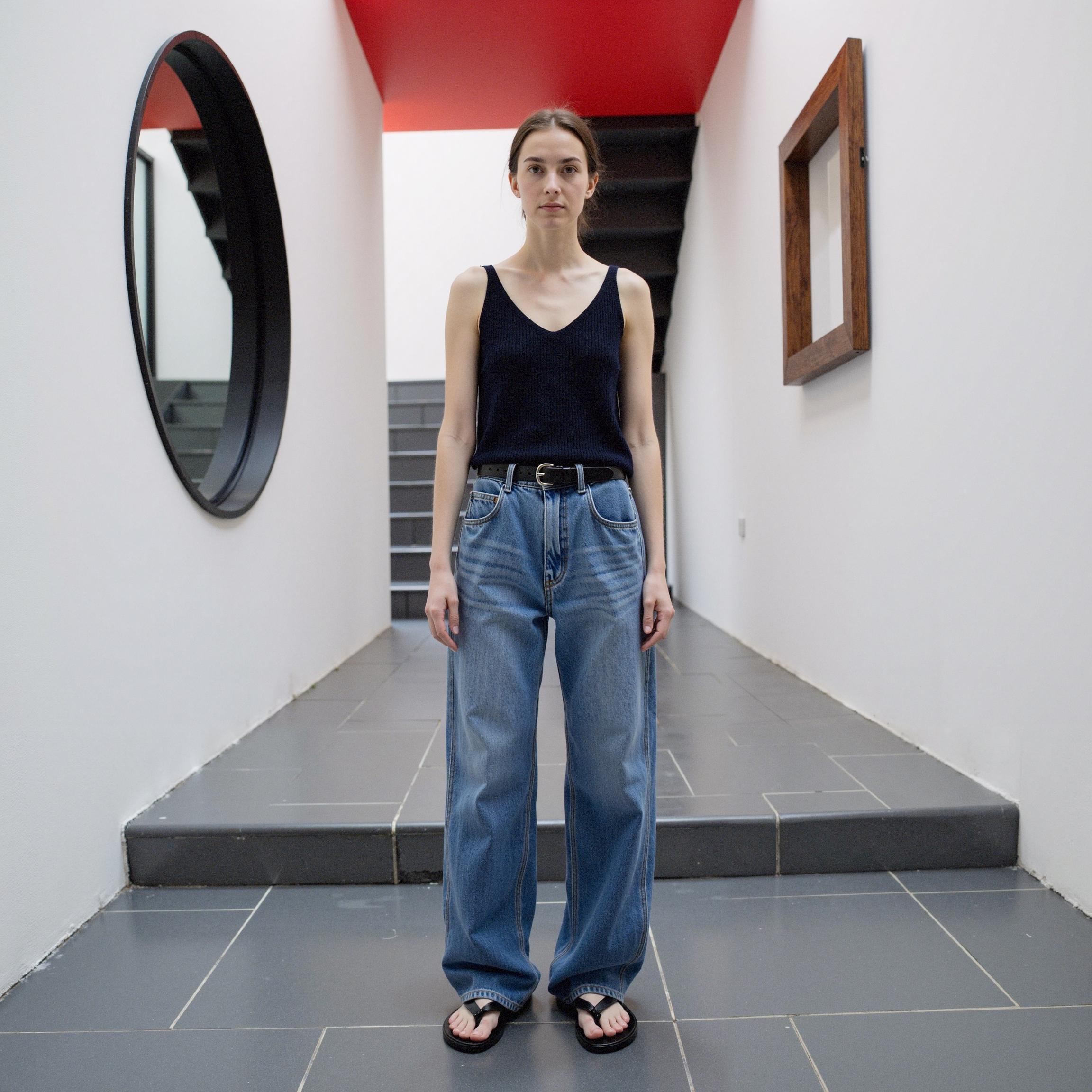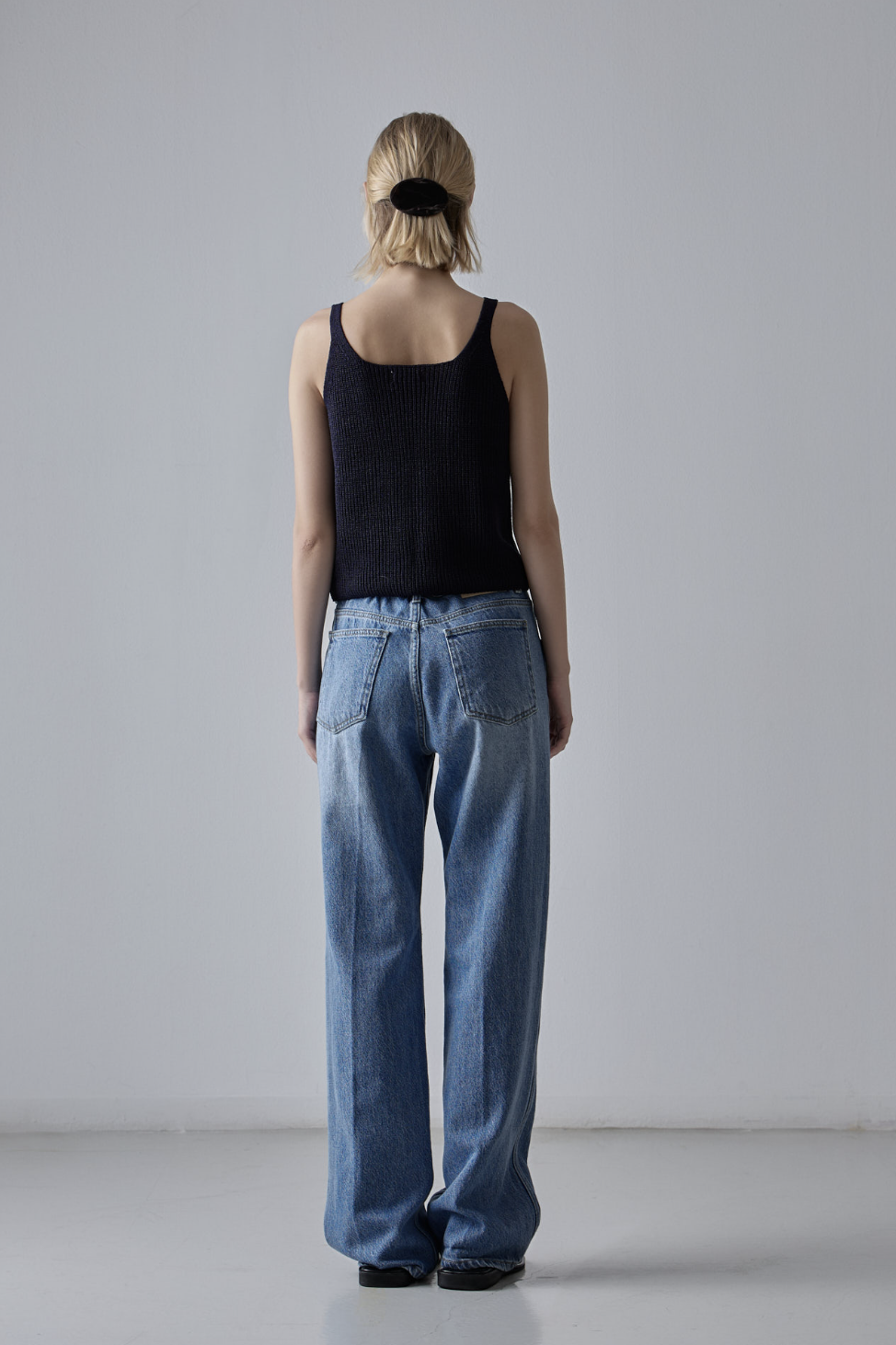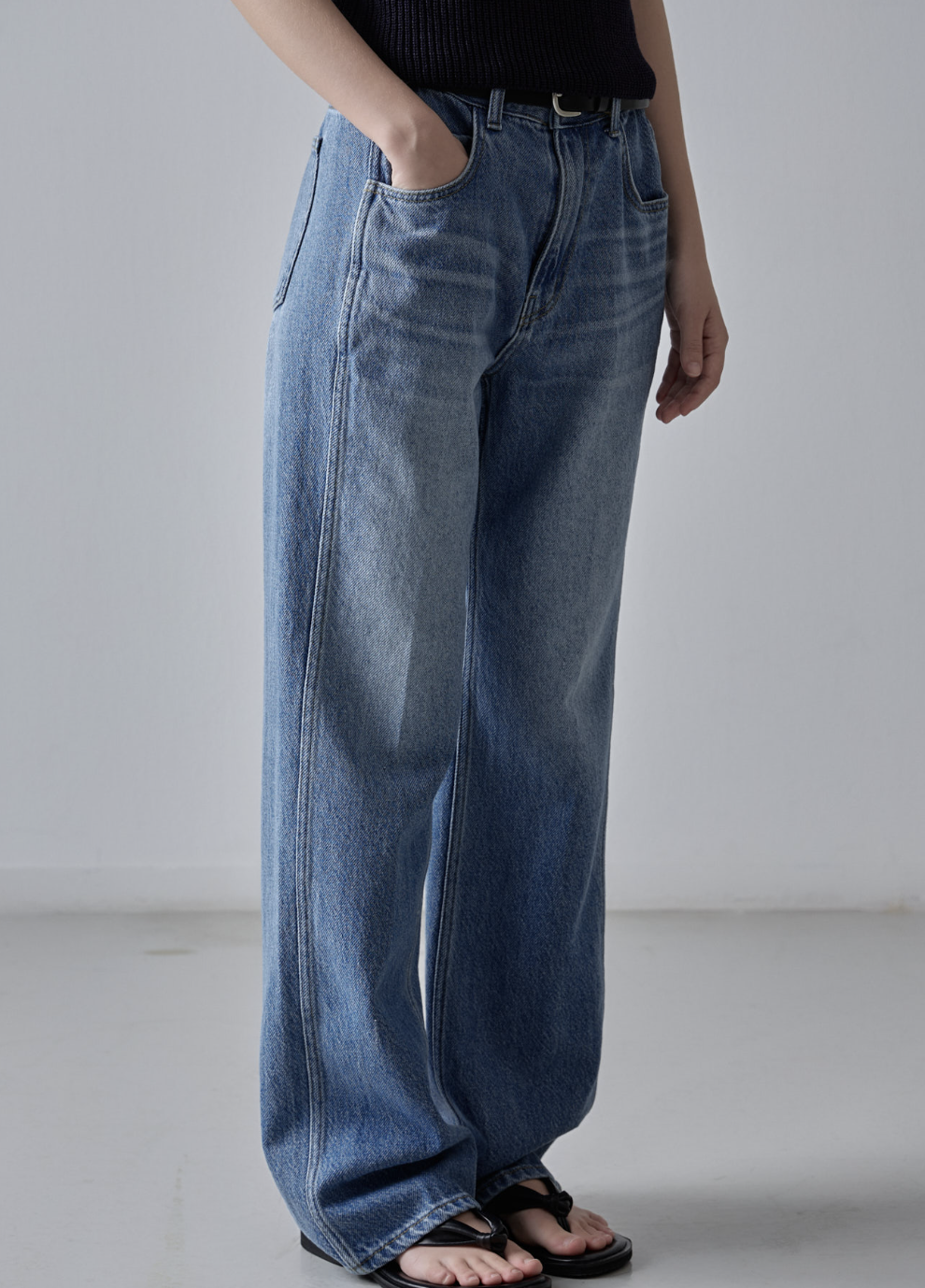 기존 제품 이미지들을 살펴보면, 브랜드 특유의 여유로운 무드와 클린한 감성이 잘 담겨 있었습니다. 전체적으로 밝고 정갈한 조명 아래에서 제품 디테일이 명확히 드러나는 구도였고, 베이직한 배경 덕분에 데님의 실루엣이 부각되며 착용자의 분위기도 담백하게 표현되었습니다.