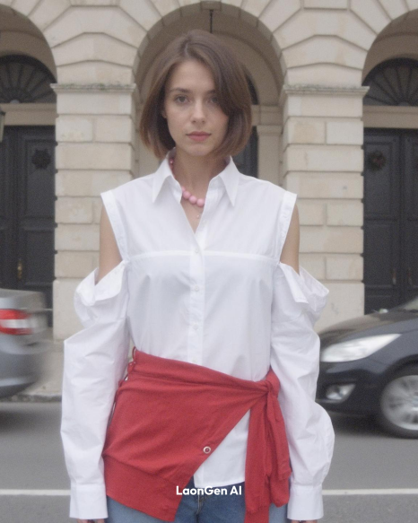 LaonGEN AI 화보 - 여성 패션 브랜드 LEWKIN 셔츠, 스커트 AI 룩북 생성