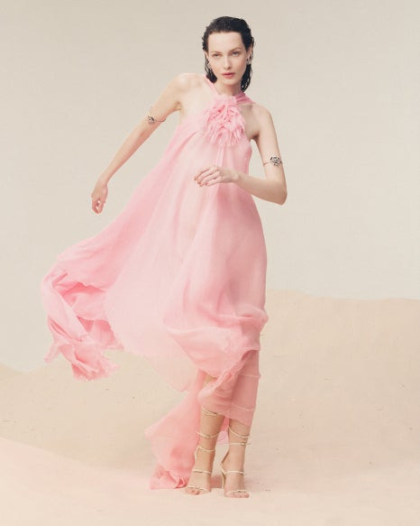 ✔ Chloé 2025 S/S 컬렉션 – 시스루 소재의 페일 민트 컬러 드레스로 우아한 분위기 연출