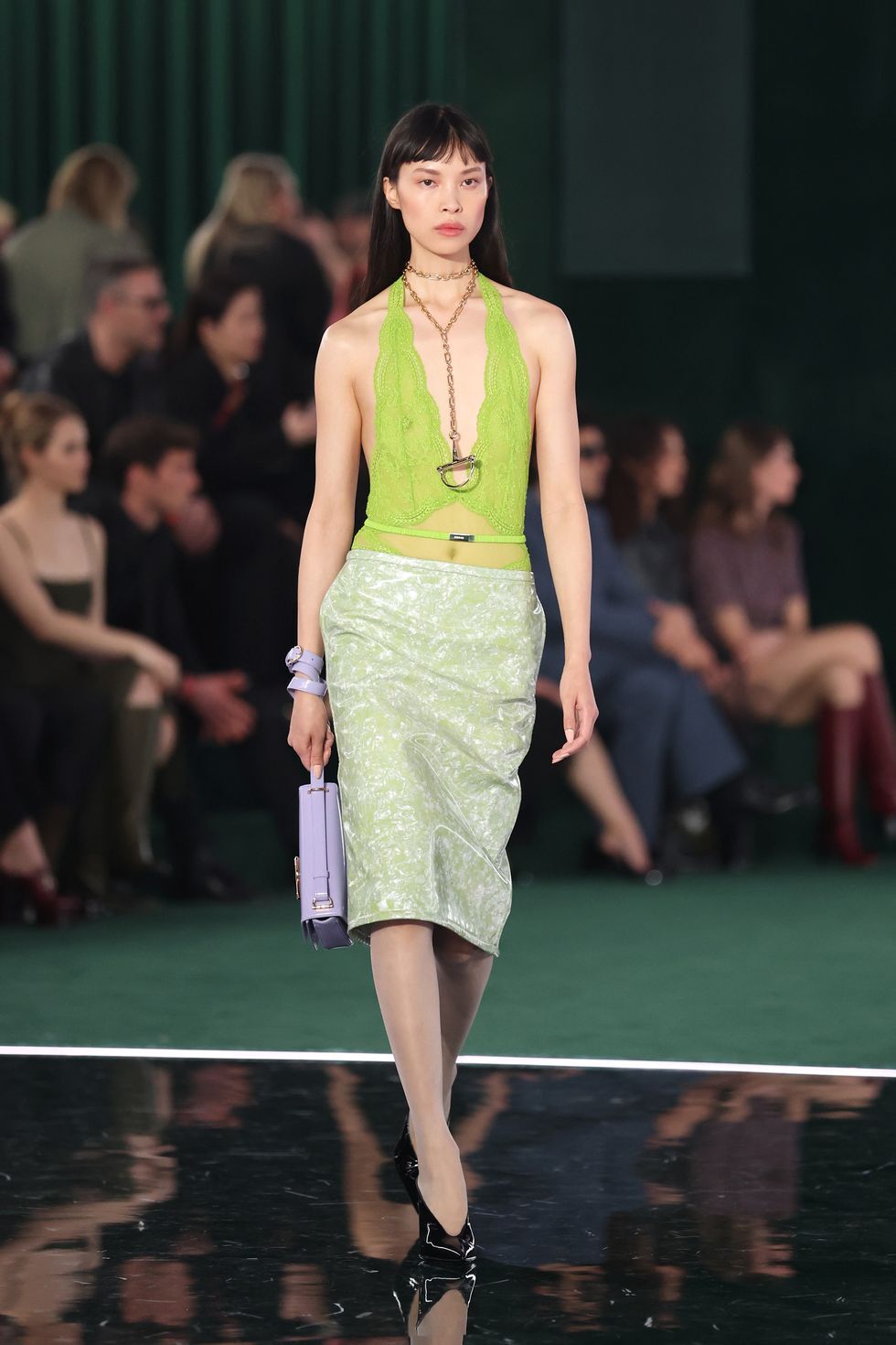 Brandon Maxwell, Courrèges, Gucci 등 주요 브랜드에서 레이스가 다수 등장하며 보헤미안 패션이 럭셔리한 렌즈를 통해 재해석되고 있습니다. 시스루 소재는 단순히 투명함을 넘어 움직임과 흐름을 강조하는 방향으로 발전하고 있습니다.