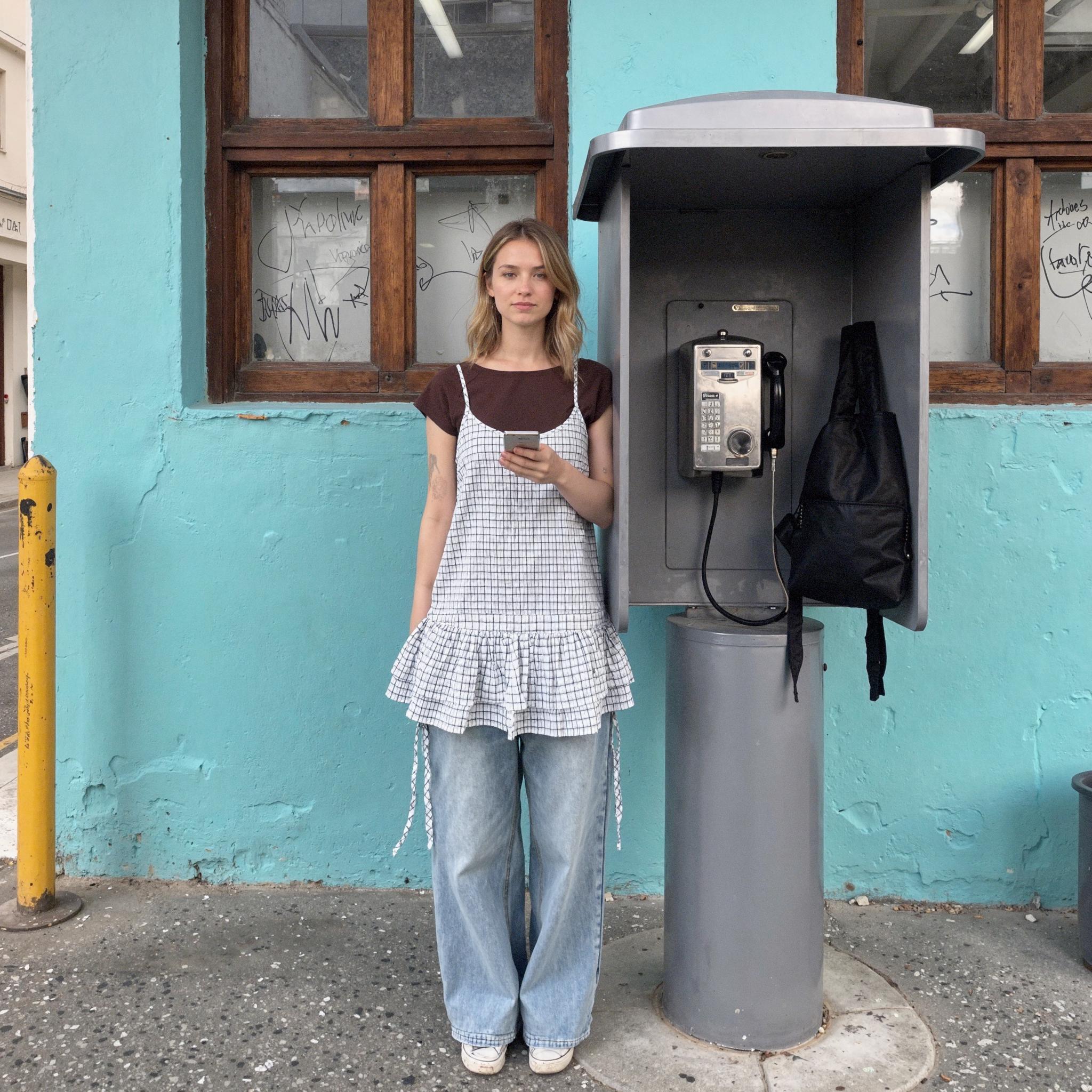 LaonGEN AI로 새롭게 선보이는 오뉴이 체크 스트링 뷔스티에 원피스 스타일링