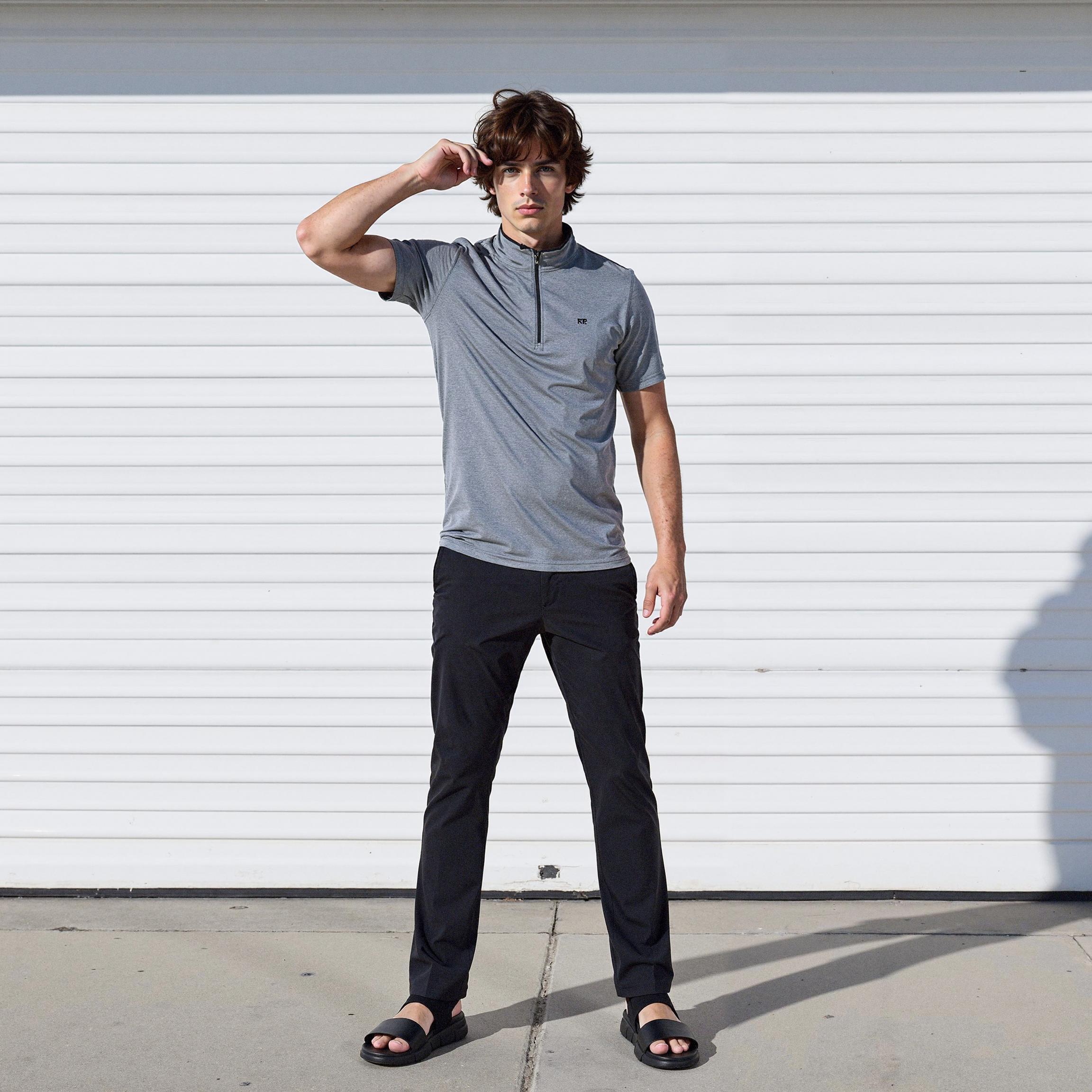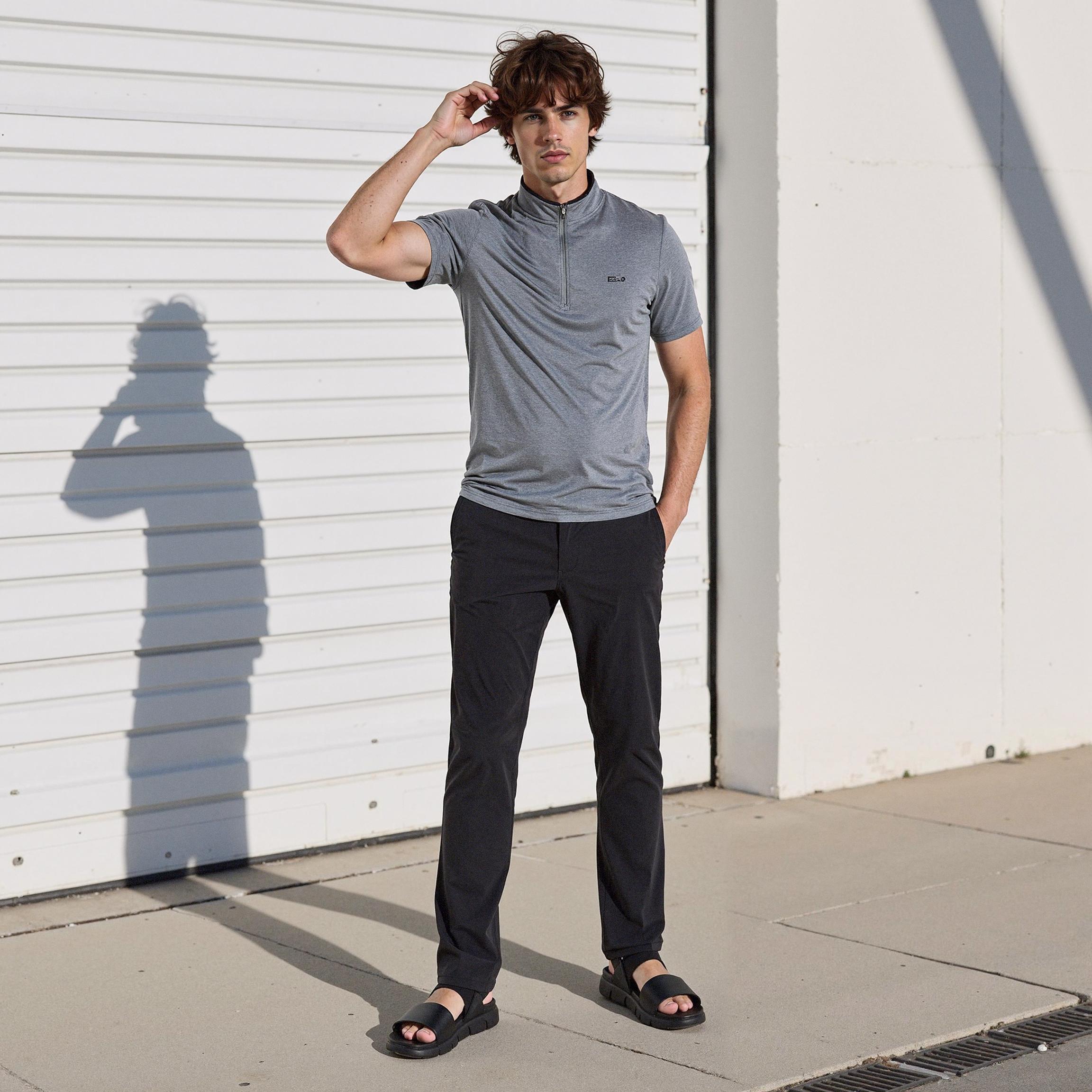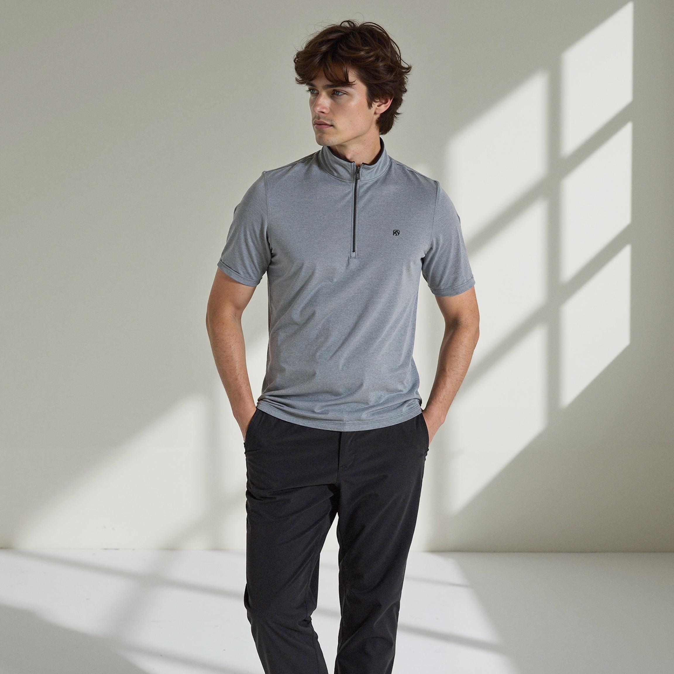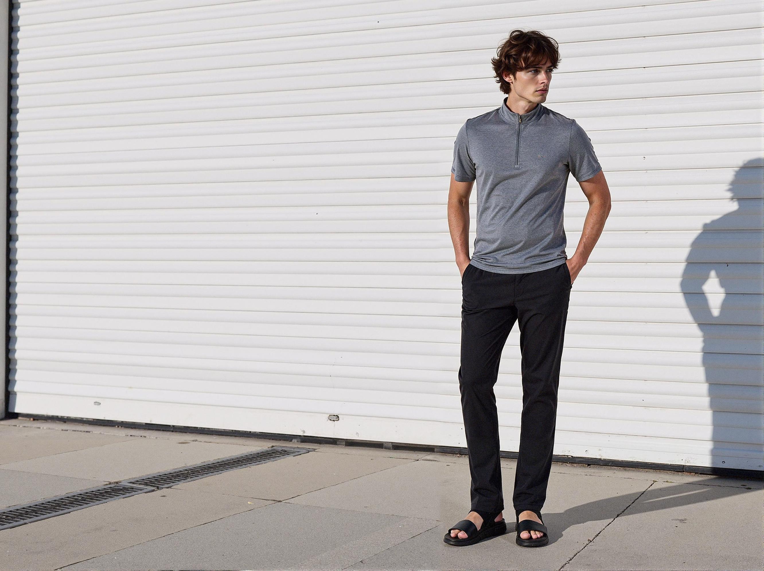 도심 속 다양한 공간에서의 캐주얼한 스타일링도 효과적으로 표현되었습니다. 카페, 거리, 사무공간 등에서 스판 반집업 반팔 티셔츠가 데일리룩으로 활용되는 모습이 자연스럽게 연출되어, 브랜드가 추구하는 도시적 감성이 잘 드러났습니다.