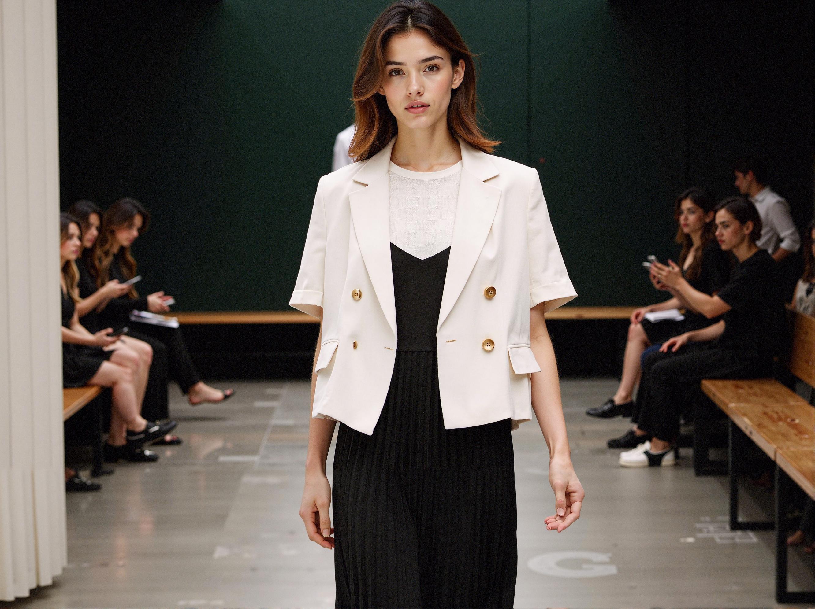 골드 버튼의 질감과 위치, 라펠의 형태까지 세밀하게 재현되었습니다. 이 정도 디테일이면 상품 상세페이지나 브랜드 룩북에 충분히 활용 가능한 퀄리티입니다.