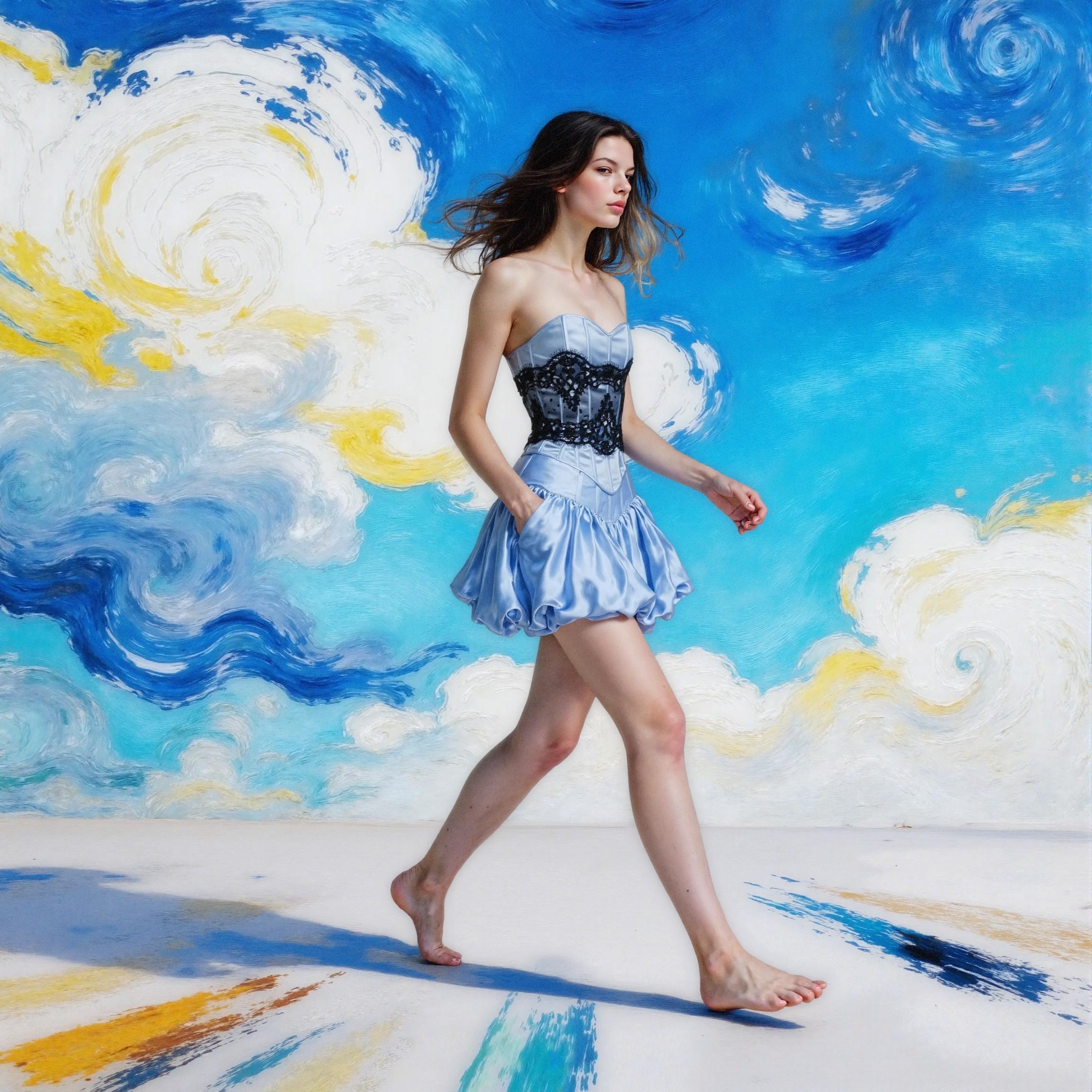 - 신체 라인을 강조하되 과장 없는 포즈